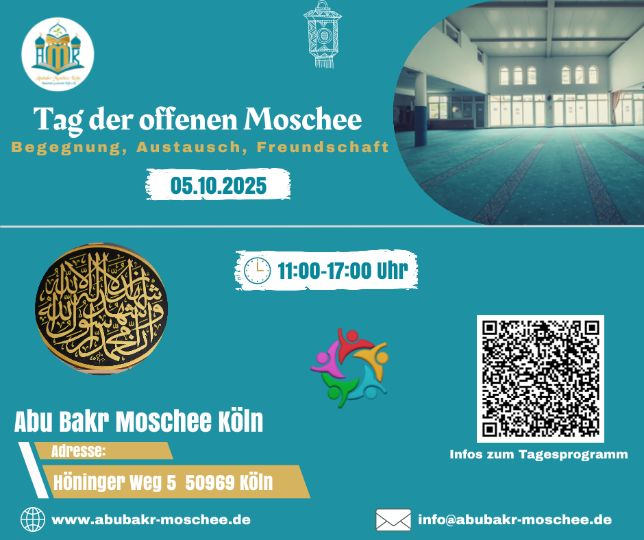 Unser islamischer Verein hat eine Jahrzehnte lange Geschichte in Köln. Neben einem Begegnungsort für Gebete und Feste ist die Abu Bakr Moschee ein Ort, um umfangreiches religiöses und kulturelles Wissen zu erlangen.